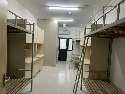 公寓內(nèi)設集宿區(qū)和生活服務配套區(qū),集宿區(qū)有14個管理單元,每個管理單元有20個房間,其中有1間洗衣房(兼開水房),每個房間可住4人,均配置獨立衛(wèi)生間,兩張高低床,空調(diào)和熱水器等設施。