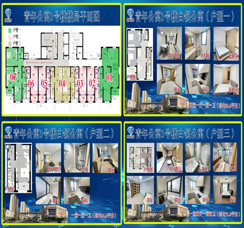 青年公寓于2021年12月開工建設,共建設保障性租賃住房1450套,其中成套租賃住房(白領公寓)154套,精裝修交付;非成套租賃住房(藍領公寓)1296間,毛坯交付:可容納約7900人入住,同時配建一棟四層約1.8萬平方米的商業(yè)樓和2.6萬平方米地下車庫,共設置機動車位781個。3號樓(白領公寓)于2025年1月1日正式啟用,對外出租。