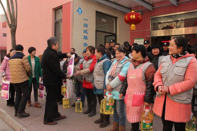 在新春佳節(jié)即將來(lái)臨之際,2月12日上午,園區(qū)城管局副局長(zhǎng)楊同異帶領(lǐng)建發(fā)公司成員慰問(wèn)奮戰(zhàn)在一線(xiàn)保潔及保安人員,為他們送上了米、面粉、油等慰問(wèn)品。