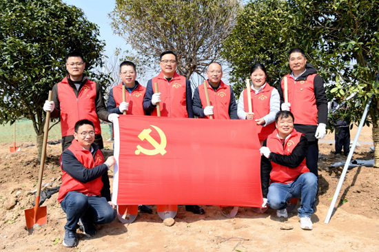 活動現(xiàn)場黨旗飄揚,黨員干部熱情高漲,揮鍬鏟土、扶樹填土,每個環(huán)節(jié)都銜接有序、一絲不茍,呈現(xiàn)出一片熱火朝天的忙碌景象,展現(xiàn)了黨員干部積極向上的精神風貌。在大家的共同努力下,一株株新栽樹苗昂然挺立,錯落有致,煥發(fā)勃勃生機,為園區(qū)增添一片綠色。