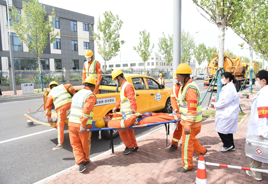 項目總指揮接到報告后立即啟動應(yīng)急預案,同時緊急抽調(diào)各方應(yīng)急救援隊伍迅速趕赴現(xiàn)場,開展安全生產(chǎn)應(yīng)急救援、現(xiàn)場醫(yī)療救治相關(guān)處置工作,待傷者逐漸恢復意識,隨后組織車輛將傷者送院就醫(yī)。至此,本次演練結(jié)束。