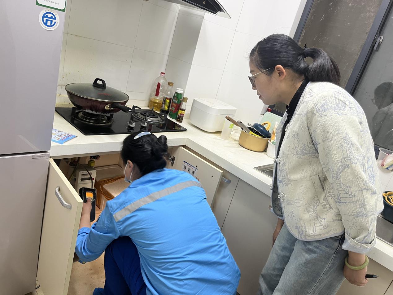 工作人員對(duì)燃?xì)庥脩?hù)開(kāi)展逐戶(hù)檢查,重點(diǎn)對(duì)天然氣接口軟管是否老化、燃?xì)馄骶呤欠癯谑褂?、是否有熄火保護(hù)措施,燃?xì)忾y門(mén)是否正常使用等問(wèn)題進(jìn)行全面檢查。在檢查過(guò)程中,發(fā)現(xiàn)廚房操作間積堆物品、線路交叉重疊等現(xiàn)象,要求客戶(hù)立即整改。