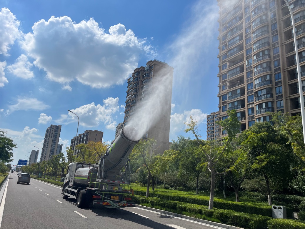 加大機械化作業(yè),降低工人作業(yè)強度。調整機械作業(yè)方式,啟動“平面灑水、立體霧化”夏季作業(yè)模式,采用灑水車、霧炮車、洗掃車相結合的方式,增加道路灑水抑塵、清掃頻次,降低工人作業(yè)強度。