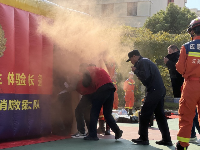 活動中,園區(qū)消防大隊工作人員和公司消防志愿者向現(xiàn)場員工發(fā)放消防安全常識二十條宣傳單,細(xì)致介紹了各類滅火救援器材的使用方法和初期火災(zāi)處置、火場逃生自救等消防安全知識?;顒蝇F(xiàn)場設(shè)置了火場逃生和火災(zāi)處置等模擬場景,參加活動的員工積極體驗,主動提升自身應(yīng)對火災(zāi)的能力。