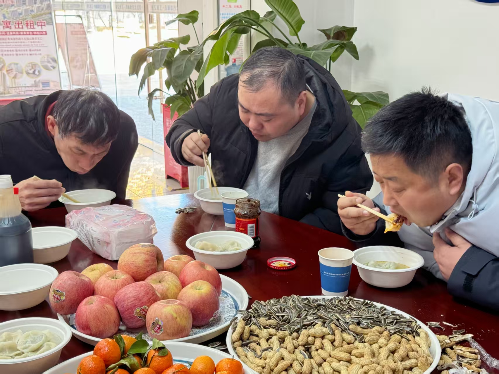 為了讓留宿員工開開心心過大年,建發(fā)公司在園區(qū)公舍物業(yè)服務中心增添別樣‘年味’,為留宿員工提供電影放映、打撲克牌等休閑活動,并于除夕當天免費提供湯圓、水餃以及瓜子、花生、水果等,濃濃的年味讓留宿員工感受到‘一家人’的溫暖和人文關懷。