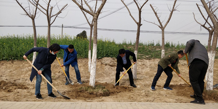 植樹現(xiàn)場,熱鬧非凡。公司員工分工協(xié)作,扛苗立苗,揮鍬鏟土,扶苗踏實,挖坑、栽樹、蓋土、澆水等各環(huán)節(jié)都精心對待,栽得認(rèn)真,干得賣力,整個植樹活動現(xiàn)場一片熱火朝天的勞動景象。