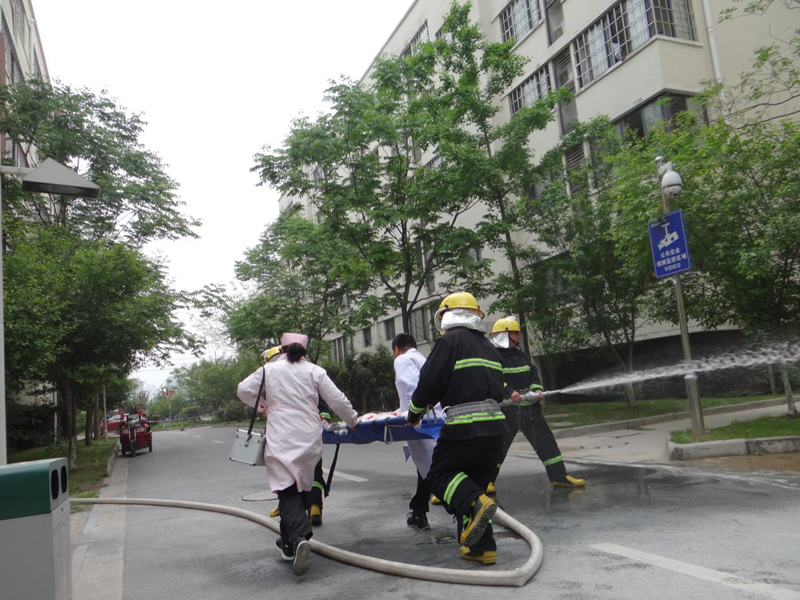 演練開始,物業(yè)部安全員首先講解了消防知識及逃生注意事項,隨后進(jìn)行人員緊急疏散、傷員救護(hù)及火場滅火演練。