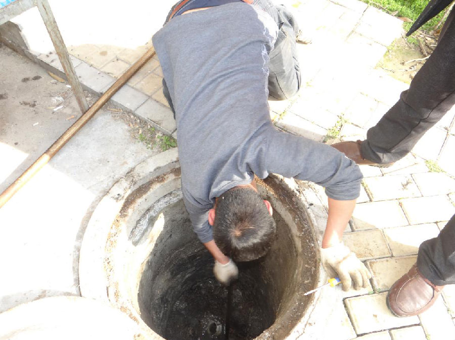 工人依次將井蓋掀開,發(fā)現(xiàn)水泥井下面油污淤積致管道堵塞,其主要原因是,每日產(chǎn)生的殘羹剩菜和廢棄物未經(jīng)過濾網(wǎng)直接流入下水管道,固體垃圾進入管道遇到油污后導致管道堵塞。