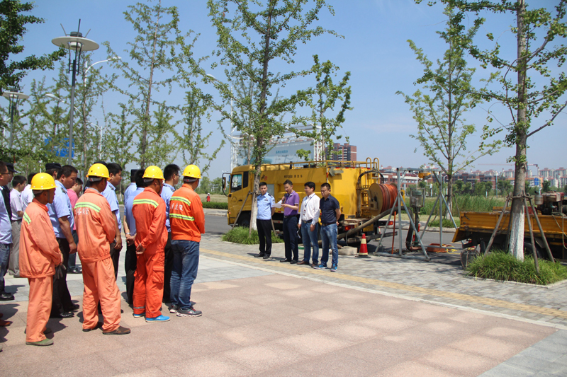 本次演練模擬強降雨期間,區(qū)內(nèi)河道水位超出警戒線,部分道路出現(xiàn)嚴重積水現(xiàn)象。園區(qū)防汛抗旱指揮部根據(jù)防汛應急預案,調(diào)動專業(yè)搶險隊伍及設備,開展應急處置工作,檢驗搶險人員熟練操作設備情況、設備物資的運行情況等。