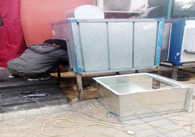1月11日下午2時(shí),正處于午飯結(jié)束,發(fā)現(xiàn)師傅們正在對2家商戶油煙管道進(jìn)行整改。