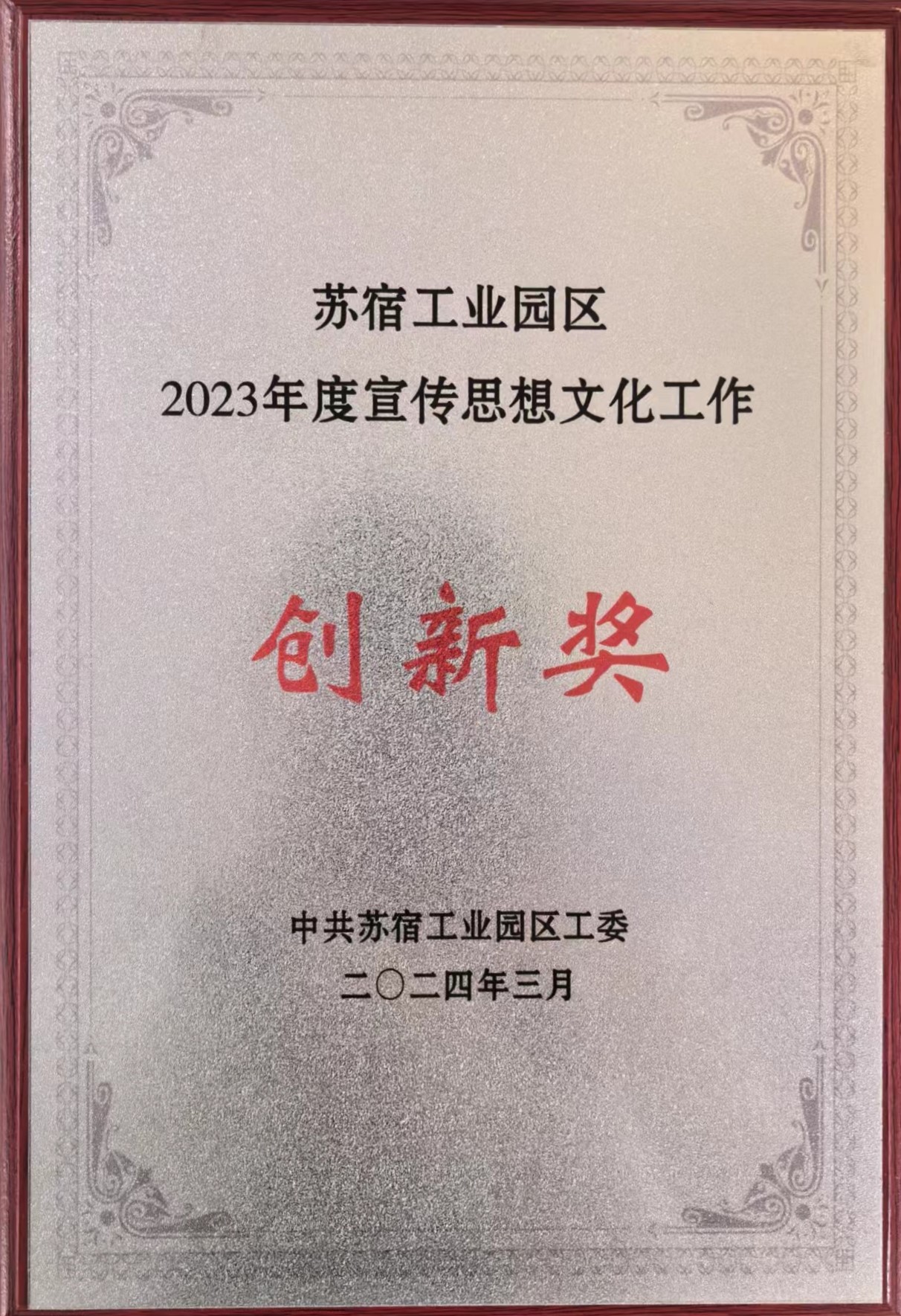 蘇宿工業(yè)園區(qū)2023年度宣傳思想文化工作創(chuàng)新獎(jiǎng)